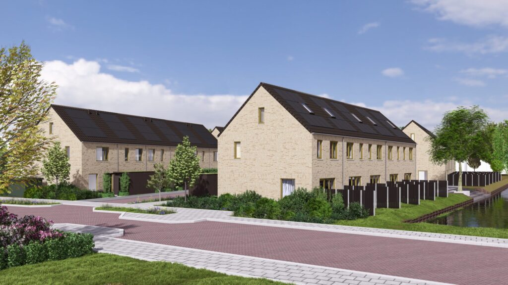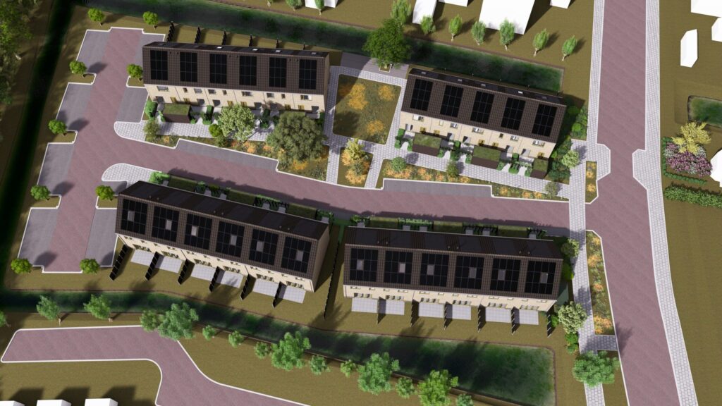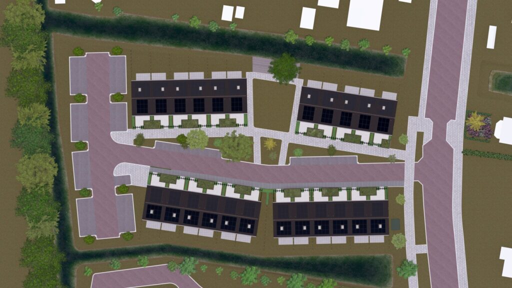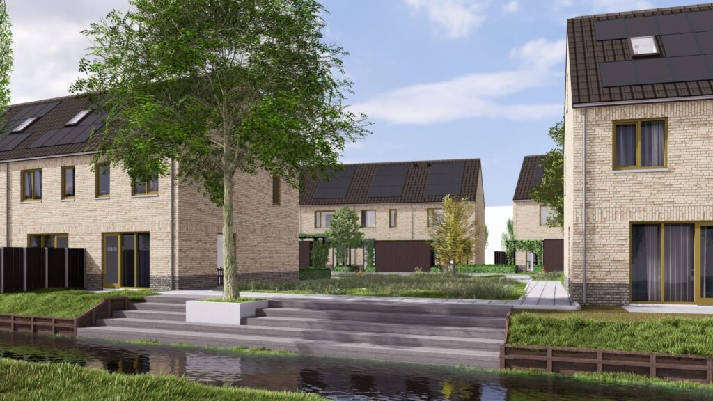 De woningen zijn gesitueerd rondom een groen binnenterrein, waar pergola’s en groendaken een sfeervolle en natuurlijke uitstraling creëren. De achtertuinen van de woningen liggen direct aan het water. Het project wordt naar verwachting opgeleverd in Q1 2026.